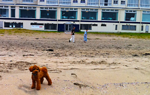 当然ながら海ではまったく遊べず、多少の晴れ間に誰もいない海岸を散歩したり、テラスのドックランで遊ぶのが関の山。