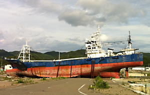 地面に横たわる第18共徳丸は、被害の大きさ、津波の恐ろしさを体現していました。