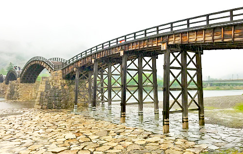 チェックインの前に、今夜の宿にほど近い、美しい五連の木造橋『 錦帯橋 』へ寄ってみました。