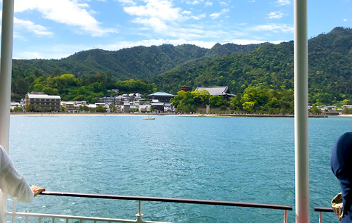 往路は鳥居の近くを通るJRフェリーにしましょう。進行方向の右側から見ることができます。