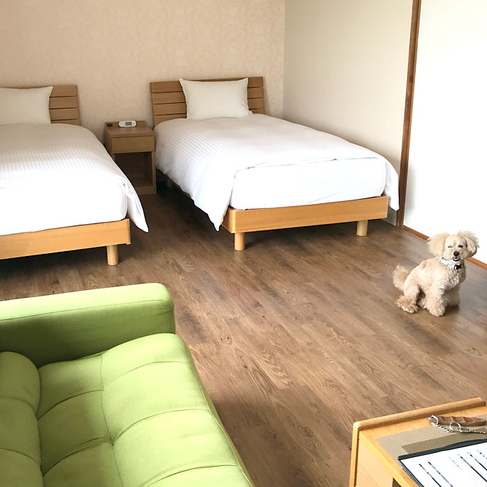 犬連れ専用ホテルなので館内どこでもリードで歩くことができます。宿泊客もペット連れの方しかいませんでした。