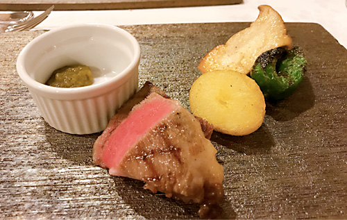 タルタル用メインディッシュは葉山牛のロースト。食べやすいように小さく刻んで頂きました。
