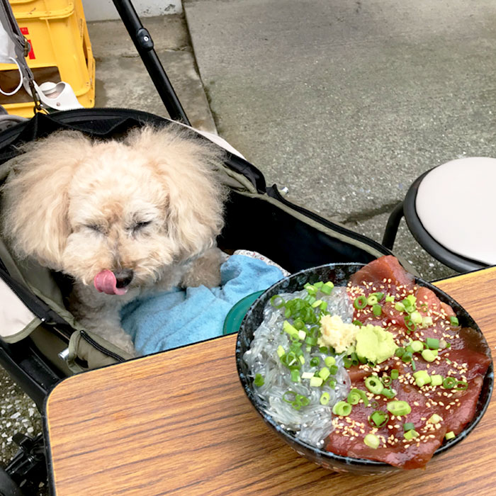 明け方からのどしゃ降りのため、船が出ず獲れたての魚はなさげでしたが、朝獲りシラスと三崎マグロ丼があったのでそちらに決定。